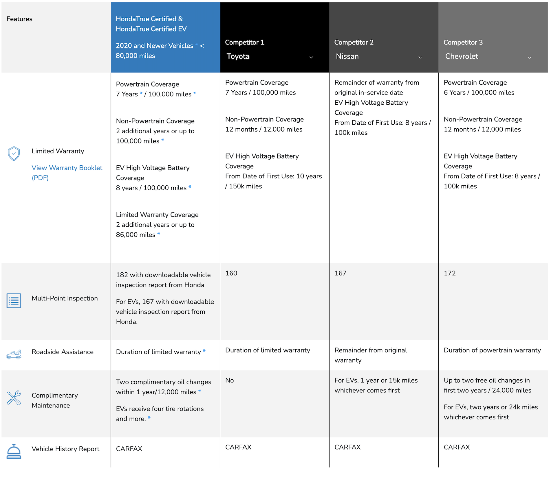 See how HondaTrue Certified Pre-Owned Vehicles stack up against the competition.