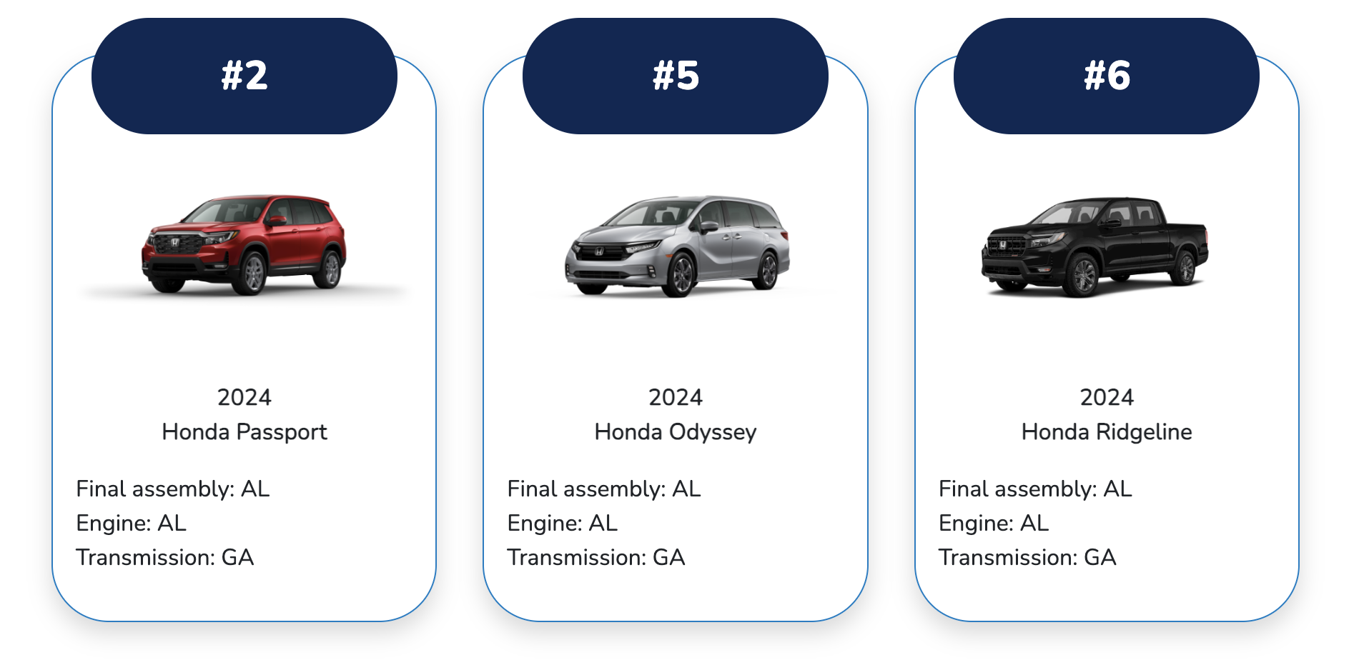 Honda has consistently been a leader in the number of vehicles topping the Cars.com ‘American-Made Index’ since it began in 2006. In 2024, nine of the top 20 spots were held by Honda models.